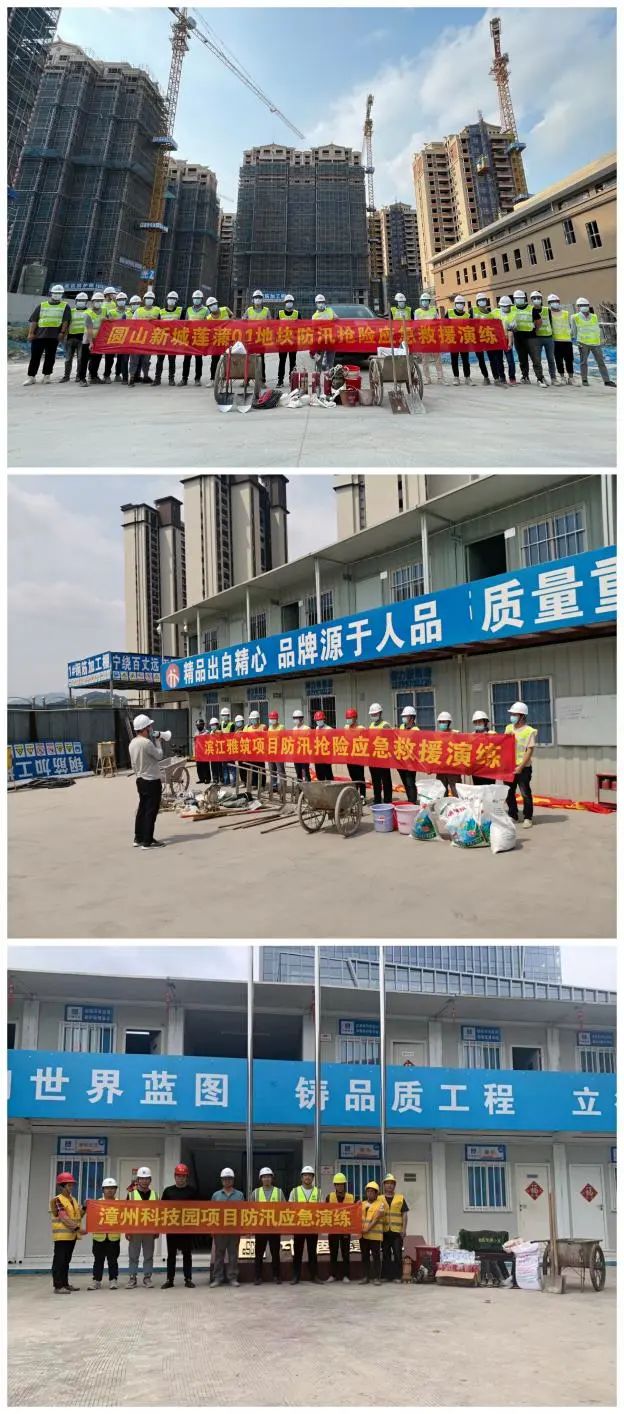4月27日,漳州圆新建设集团有限公司漳州科技园、滨江雅筑、莲浦01地块(三期)等项目组织开展防汛应急演练,进一步提高汛期险情应急处理能力,有效应对防汛等突发事件,全力保障人民群众生命财产安全。